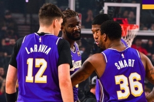 赛后,湖人官方晒出了赢球海报,海报人物为杰克-拉拉维亚、德安德烈-艾顿、八村塁和马库斯-斯玛特。湖人官方配文道:“背靠背的比赛,背靠背的胜利!”