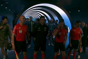 西班牙人球员赛前带着11只待领养的狗狗踏上球场,为狗狗寻找负责任的收养者。